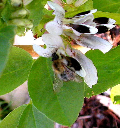 Puffbohnen blühen und werden von Bienen besucht