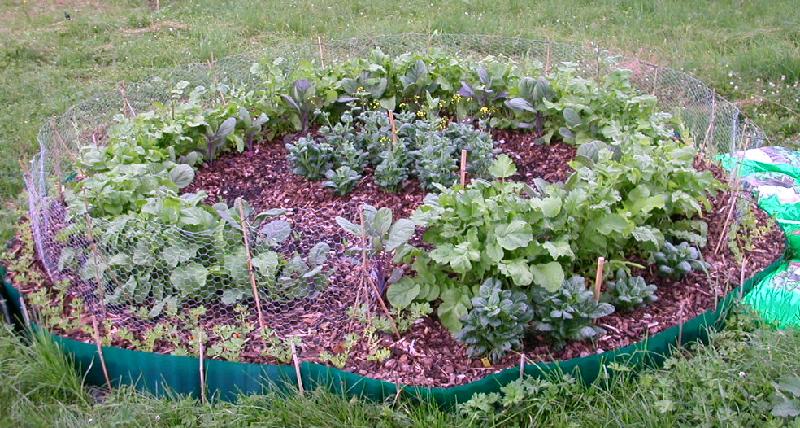 Rundbeet mit den ersten Setzlingen